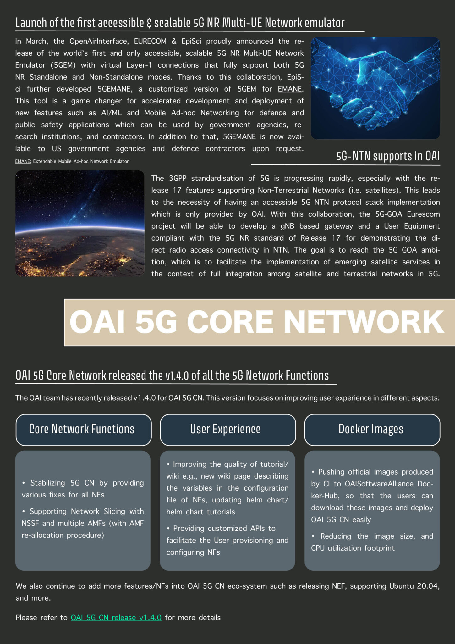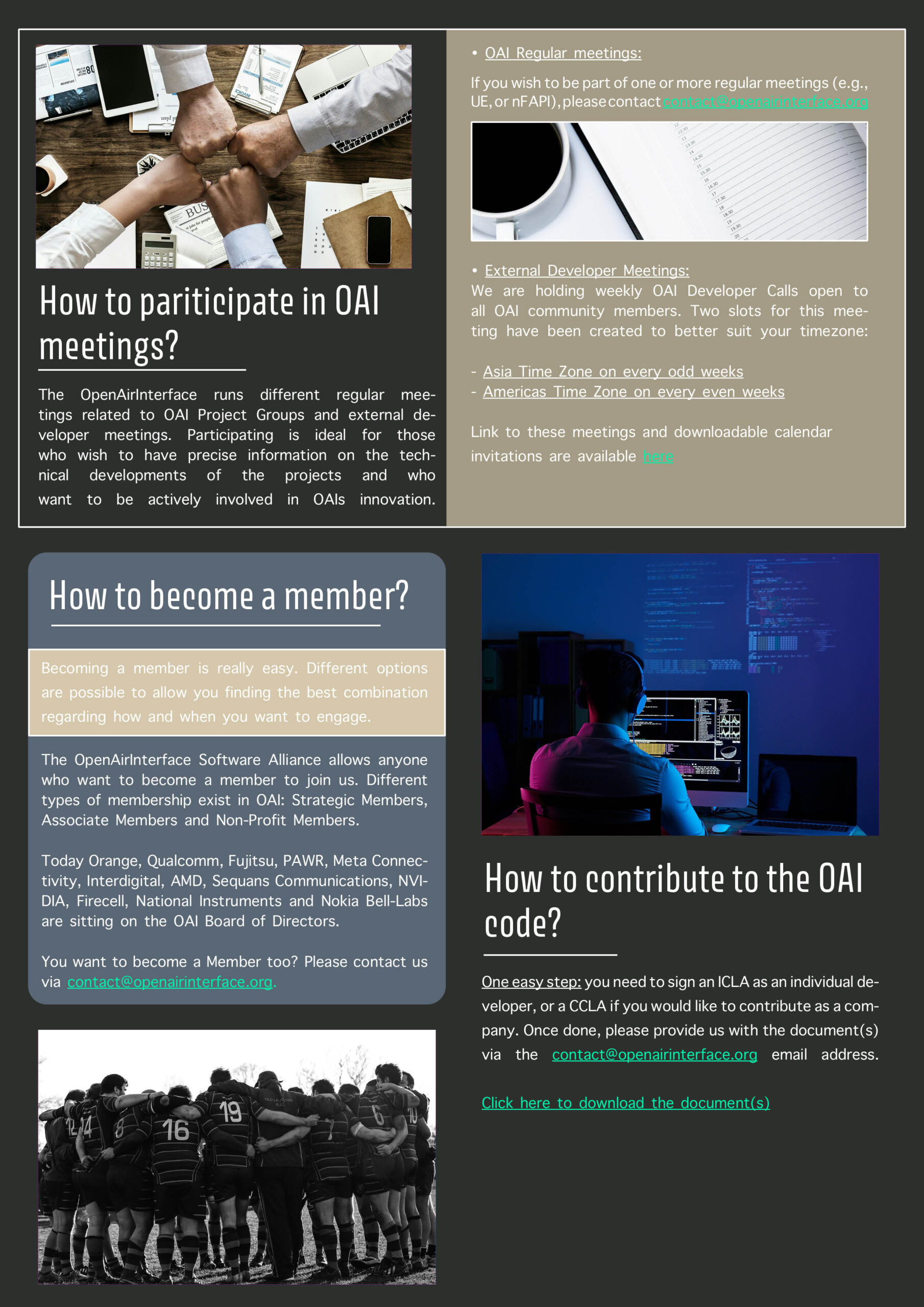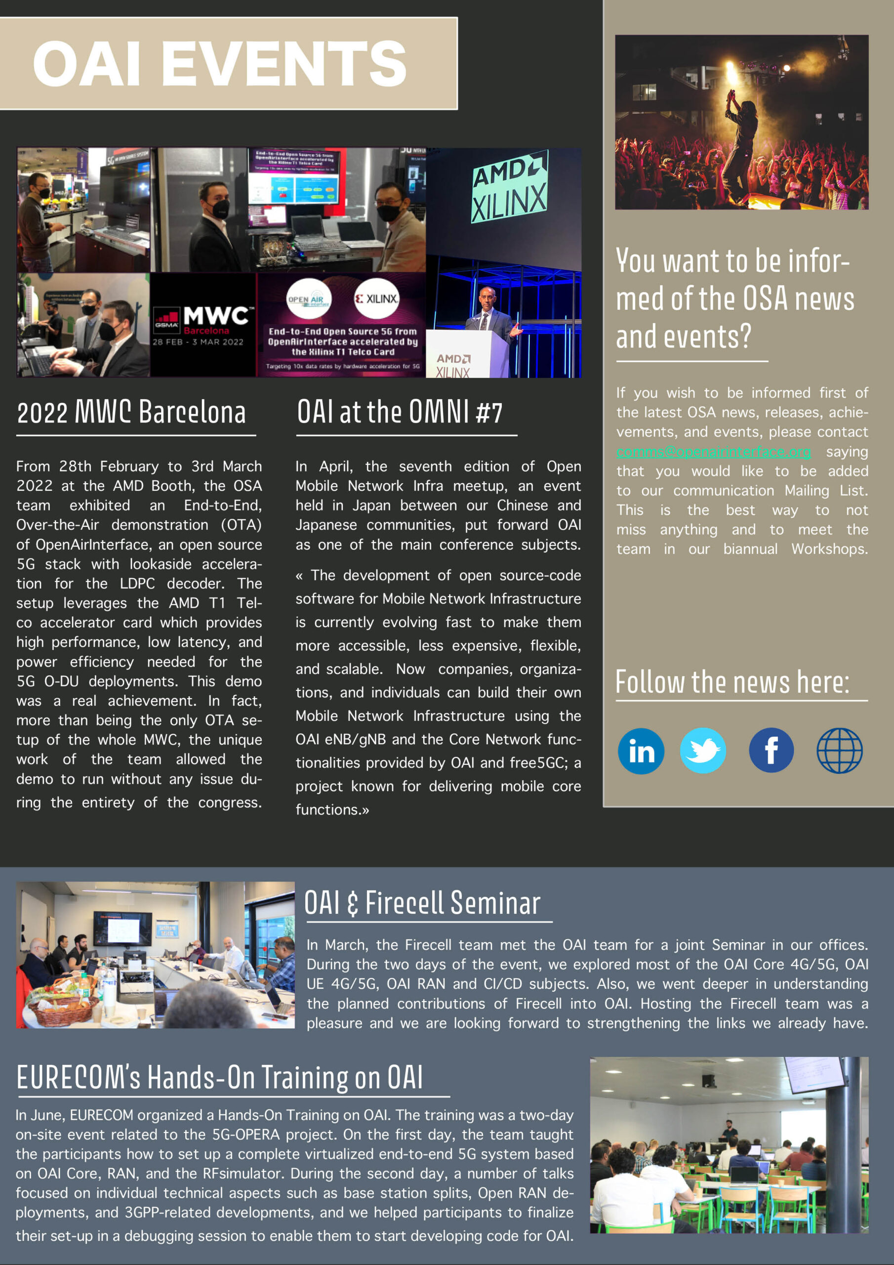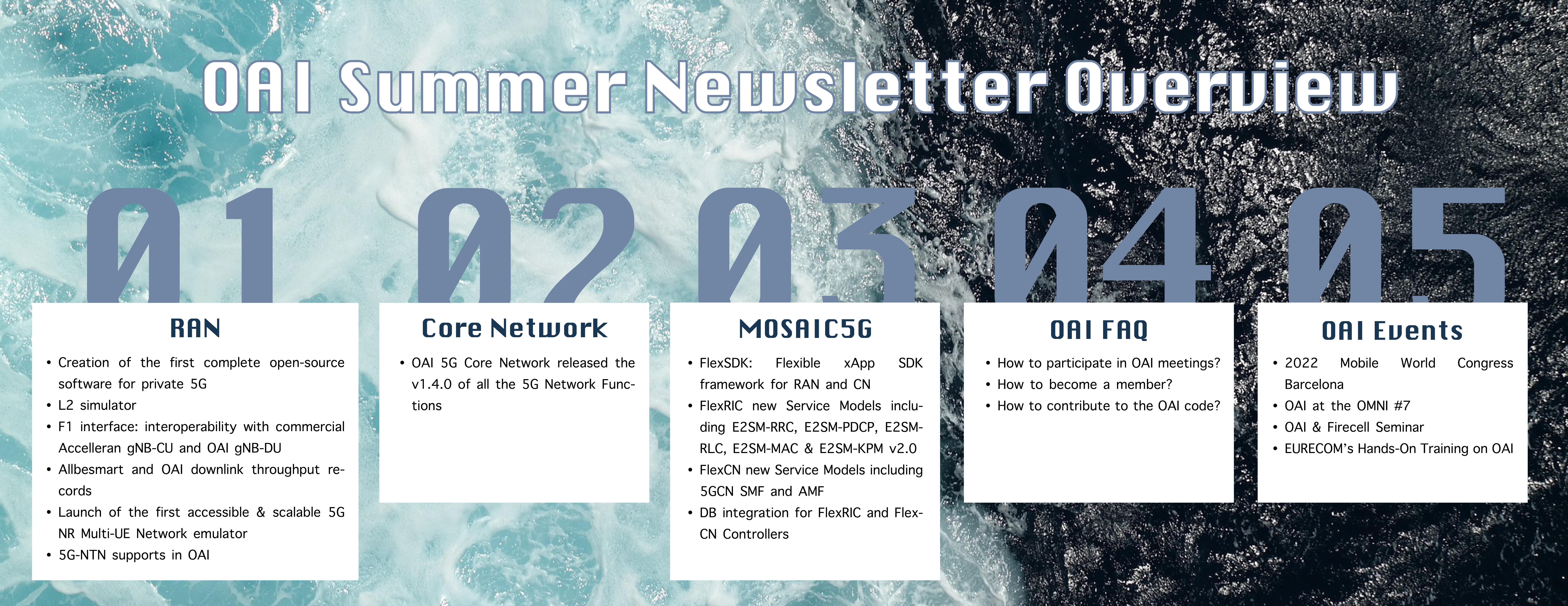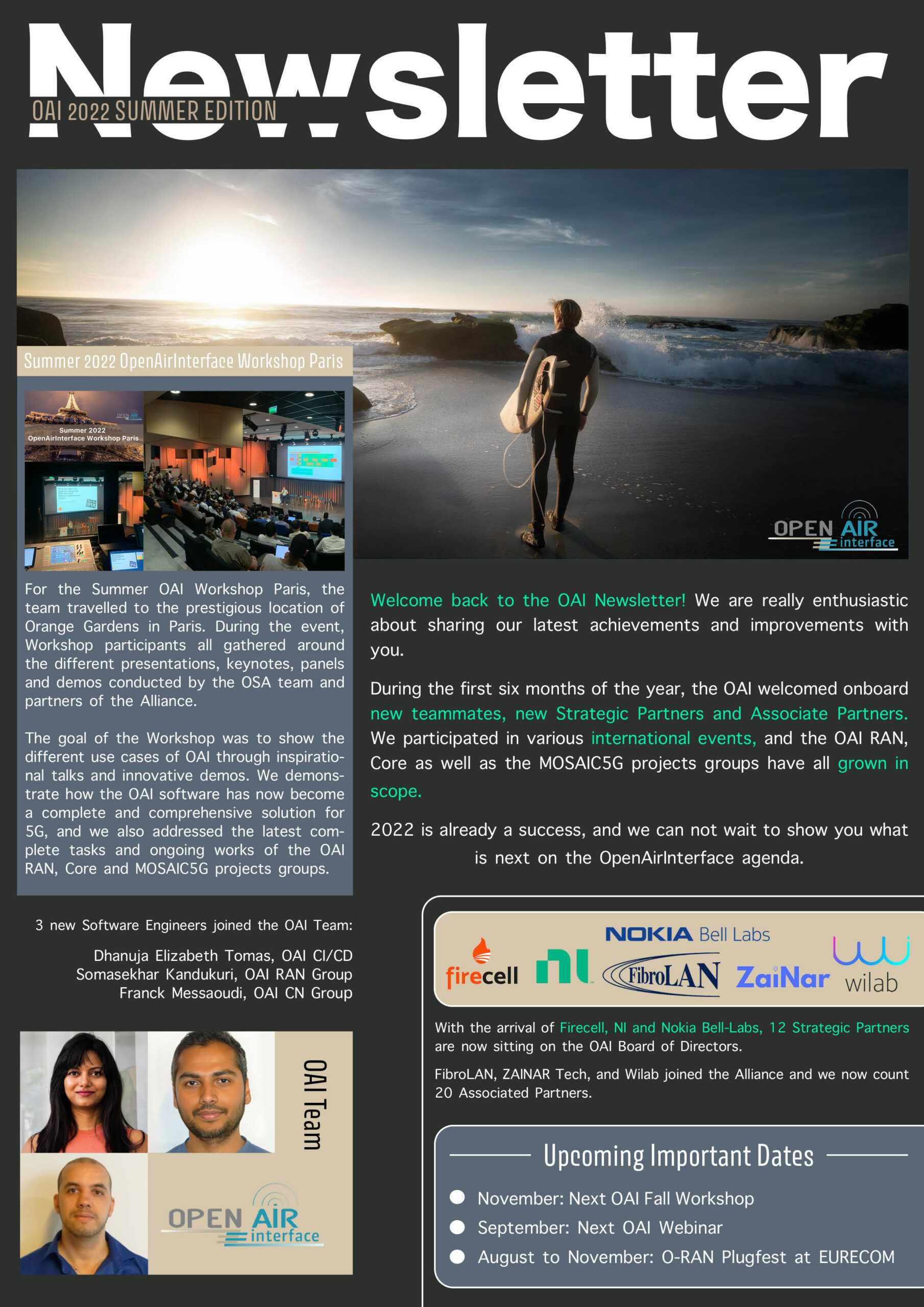 Every OAI 5G Project Group is addressed in the Newsletter. Moreover, you can also find interesting information about the OAI event and more frequently asked questions, such as:
