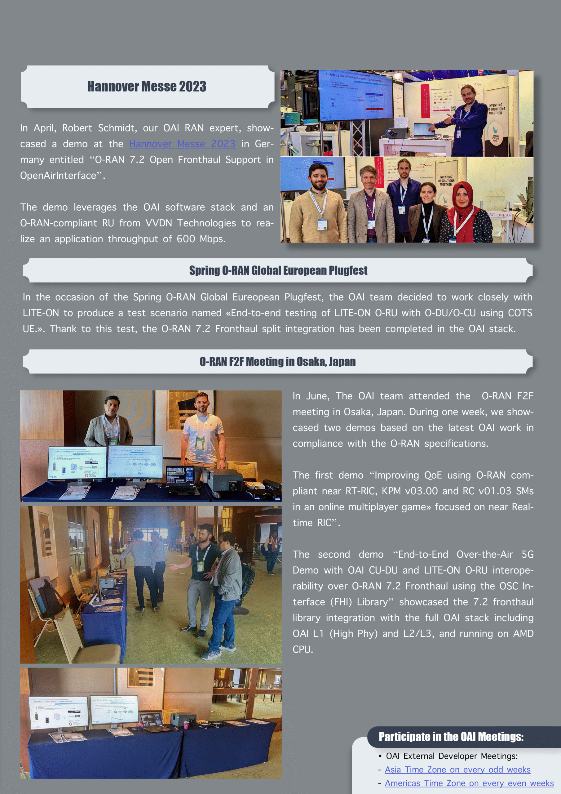 We are pleased to share with you the fourth edition of the OpenAirInterface newsletter.
