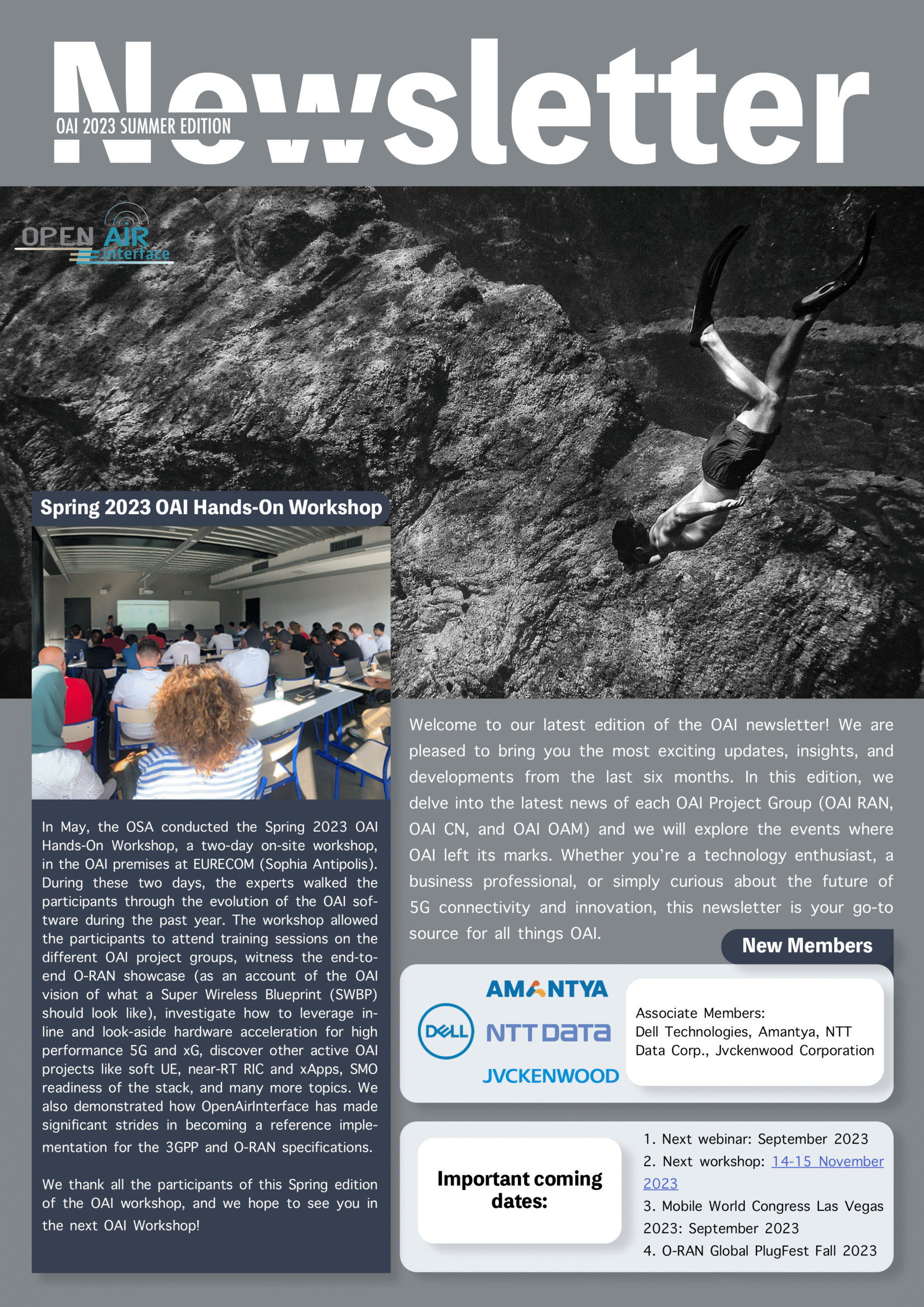 This newsletter gives a detailed overview of the activities of the OAI 5G project groups and news about forthcoming OAI events.