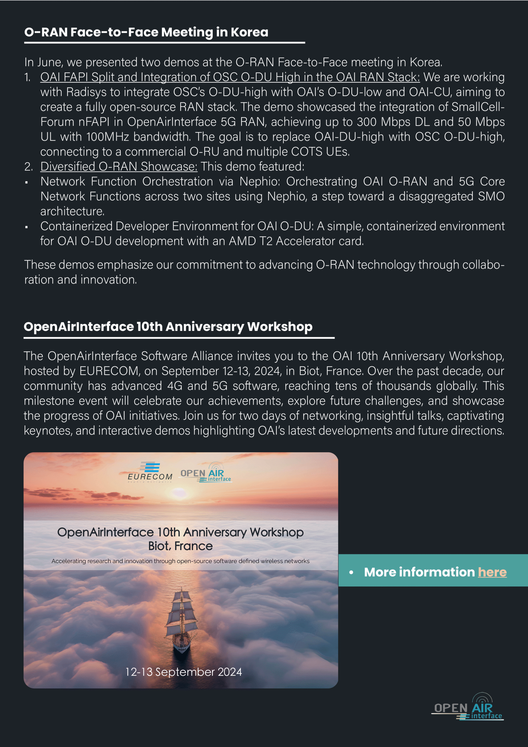 We are pleased to bring you the OpenAirInterface 2024 Summer Newsletter.