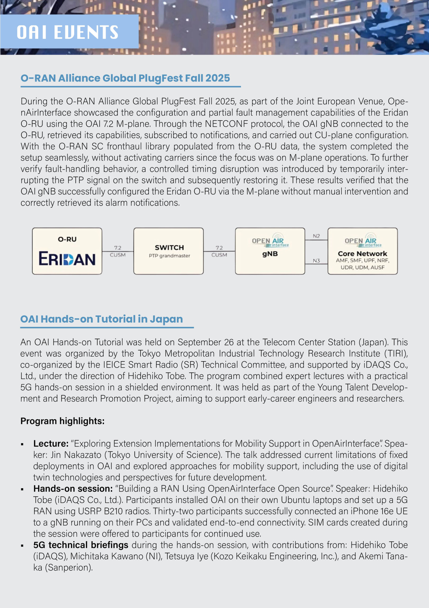 We are pleased to share the OpenAirInterface 2025 Winter Newsletter.